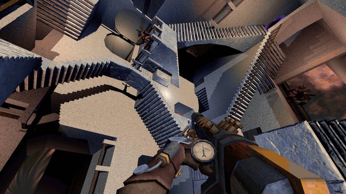 Other weapons and abilities include being able to slow down time, and using slowed-down darts to create a temporary staircase to find hidden areas. Really cool.