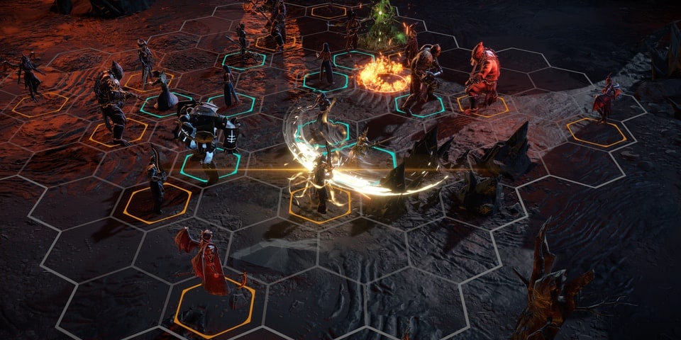 Each battle takes place on a hex grid map in which your forces start on one side and the enemy the other. These aren’t vast armies that you’re leading into battle, but rather smaller groups of around ten warriors. Avyanna and key storyline characters must be included in your squad, but otherwise you’re free to recruit a selection of warriors, healers and wizards from your city and base of operations.