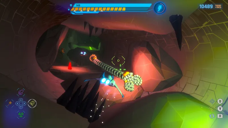 Fur Squadron Phoenix places you in the cockpit of a Starfighter as part of Fur Squadron, an elite group of fighter pilots who serve the Federation. The on-rails gameplay immediately calls back to the best sequences in the Star Fox franchise. You fly through a diverse collection of planet-bound and space environments, blasting away at the many enemies who dare take you on. As you play, you encounter standard enemies flying in formation, shielded ships that require charge shots or special weapons to take out, mechanical worms that emerge from hiding spots to fly straight at you, and, of course, end-of-level bosses that task you with dodging their attacks and blasting their weak points. Thanks to its colorful neon glow, superb soundtrack, and masterful pacing, Fur Squadron Phoenix presents consistently exhilarating dogfights that are absolute treats for the senses.ย