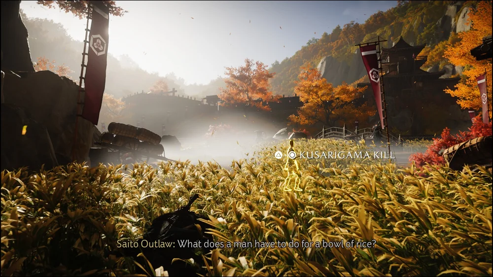 This design creates a minimal user interface. Combat indicators are clean, with subtle glints signaling unblockable strikes, while exploration blends naturally into the environment. It’s a sharp contrast to modern games that plaster yellow paint or icons across everything to guide players. Yotei’s design feels like they trust the players to figure it out, and small hints through bright colors and standout objects keep the world immersive and informative.