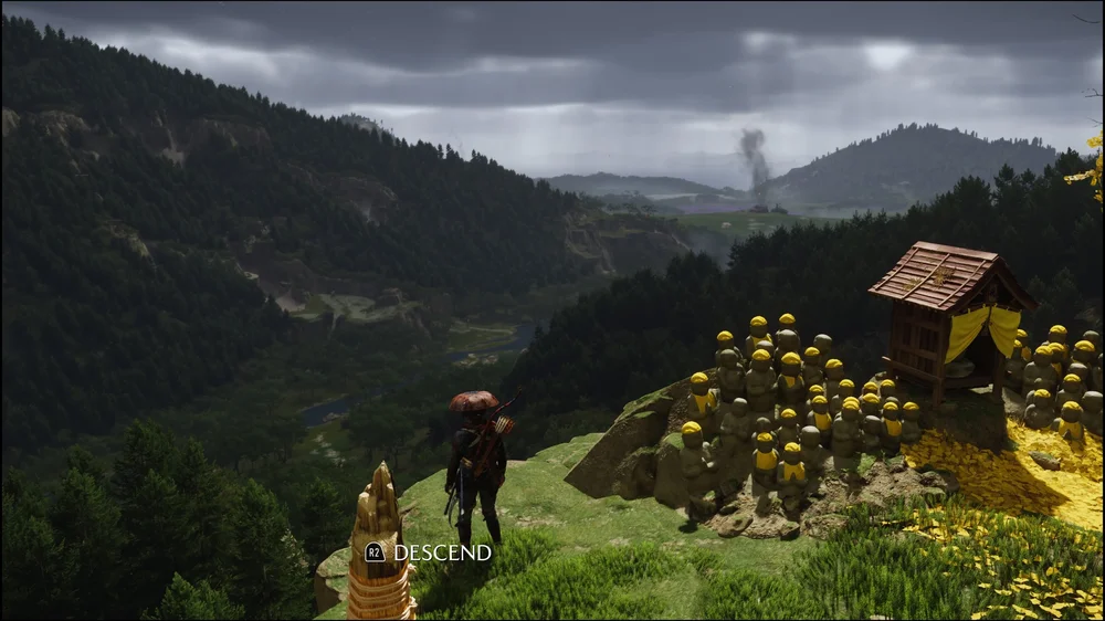 Visual cues in Ghost of Yotei are exceptional, as they are subtle guides that help you through the world without clutter. Smoke rising on the horizon might lead to a camp, while an unusually tall tree signals a secret nearby. Horses gain temporary boosts by running through white flowers, and the ingenious gusts of wind system is back, pointing you towards your marked destination. Shrines, fox dens, and subtle details like rock patterns or Buddha statues push exploration naturally without ever feeling forced.