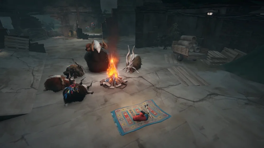 Similarly to something like Journey, Abzu, or, to a lesser extent, Ico, this is a straightforward, atmospheric “walking simulator” that’s all about the vibes. You start out as a youth in a tunnel, awoken one night by the sound of a distressed creature. Then you’ll walk through the tunnel, dodge fencing, and amble onto a basketball court in a dark courtyard, where a large Calicorn is violently struggling with a bucket on its head. Your character calmly walks up to it and takes off the bucket. There’s a staff or branch on the ground somehow, and your character instinctually uses it to guide the now-friendly, lumbering beast through the city. As you progress, you’ll learn how to work together with your new friend to open gates and discover two smaller Calicorns. You’ll be leaving town by the time the sun begins to rise, and are greeted by a gorgeous sight – a vast field, with forests ahead and mountains in the distance.