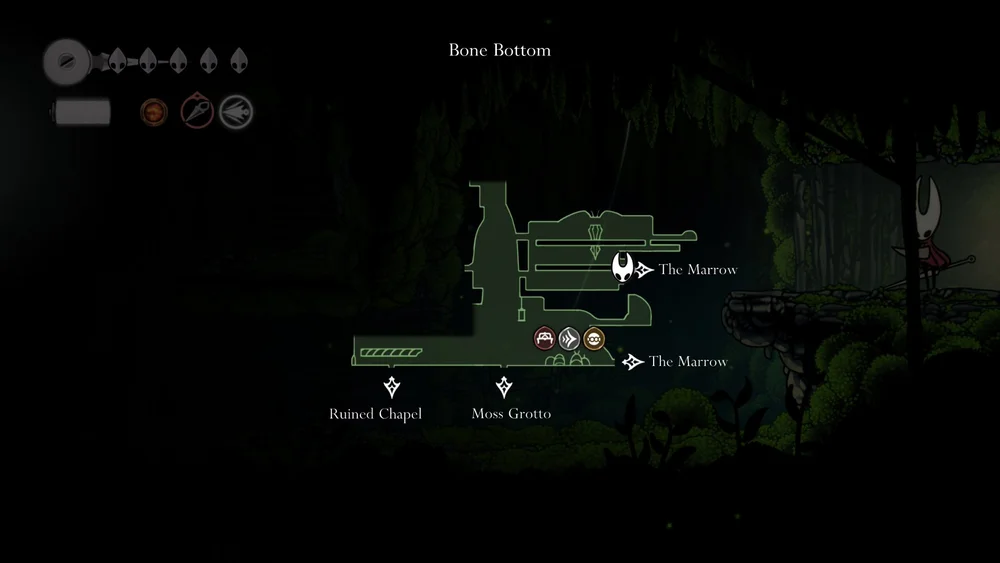 From the Bellway at the Marrow (if you’ve beaten the Bell Beast), head either west or south and then west, clearing the early-game enemies one by one in a two-room loop (three if you’re counting the bench).