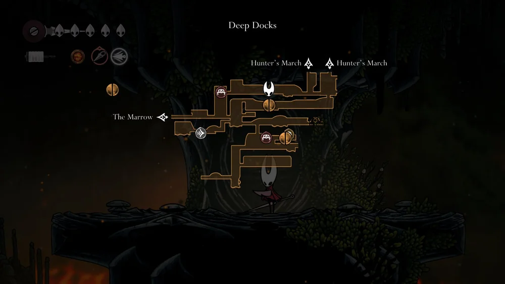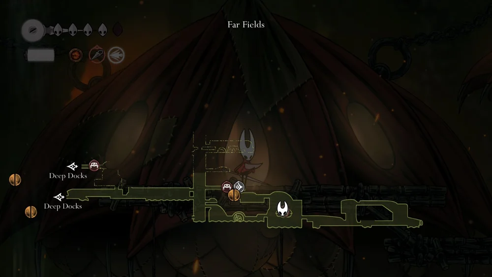 Grab the Swift Step in the Deep Docks and the Drifter’s Cloak in Far Fields before tackling the Hunter’s March, as these Silksong early upgrades will be key to making things a bit easier for you in the early game.