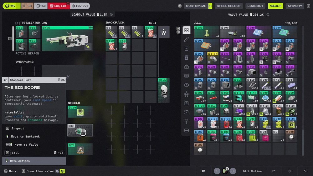 As much as it sounds punishing insofar as dying means losing all current equipment, Marathon is actually quite forgiving due to the Faction quests and their rewards. Progressing through the six available factions will provide players with upgrades like higher overall heat capacity, more stash space, the ability to buy better shields, or access to free items and sponsored kits for a reasonable price. The higher I get in each faction, the more accessible the better loadouts become.