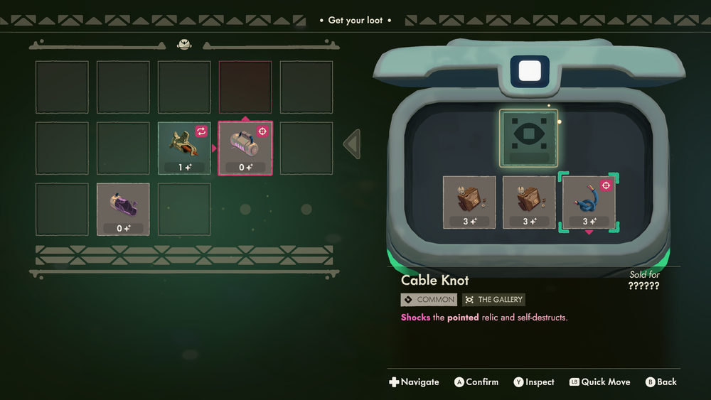 This bag management also adds pressure: dying cuts all relic quality in half, which hurts. You can leave a run anytime, but I still had moments where I was overwhelmed and lost a chunk of profit. The penalty adds needed weight to mistakes, especially when you’ve done further planning on whats in your bag.