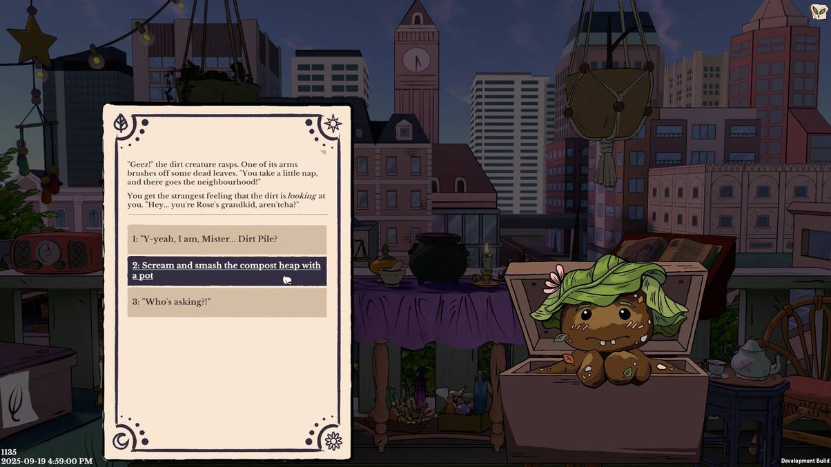 You brew potions, cast spells, and build a balcony garden. Everything in this game thrives on cycles of care, decay, and resurrection.