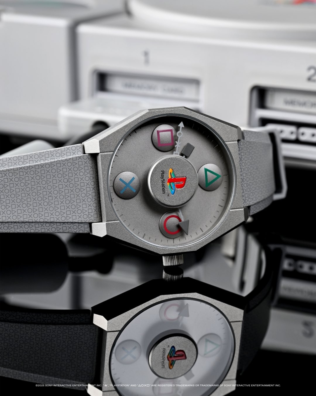 The product was designed for creators, collectors, and gamers who grew up pressing the Power button. It pays homage to the original PlayStation™, which revolutionized the video game industry in 1994. This anniversary piece captures the very essence of video game nostalgia. The dial and strap are adorned with the four iconic symbols, while the hands feature the Start & Select buttons from the PlayStation controller.