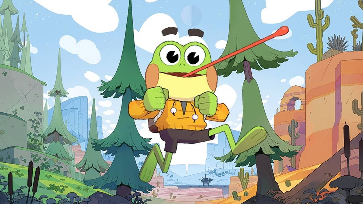 “You play as Hop, a young frog kidnapped from his home by a mysterious spirit named Diss. To get back to your family, you’ll need to gather Airship Parts scattered across the Red Desert, Open Ocean, and Shattered Mountain—all while getting roped into Diss’s strange, important job.”