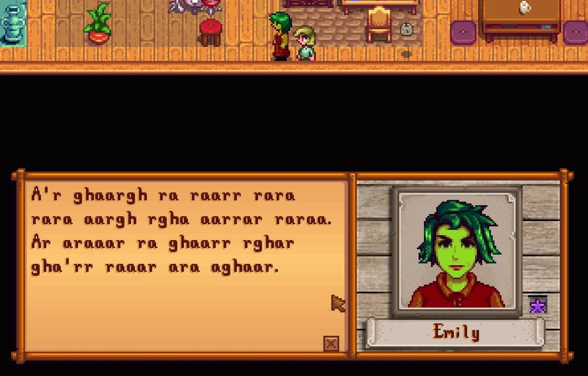 This dialogue is apparently âfully-articulatedâ and âgrammatically-correctâ according to aedenthorn, which should make conversations with the villager quite interesting.