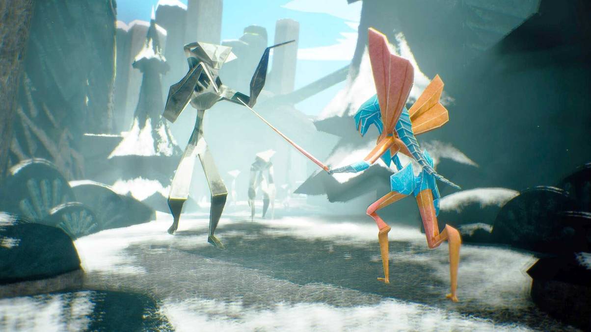 “Seamlessly shift between two distinct characters, each offering their own specialised abilities. Master the art of stealth by using paper planes to distract enemies, or fly your way past the shadowed depths of the mountains. Merge their abilities to form a swift and powerful melee combatant, ready to face any foe.”