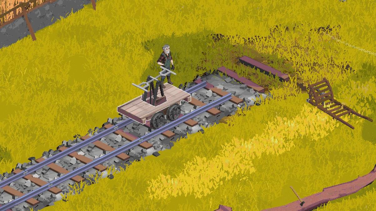 It features track building, where you need to collect materials, drag ties, ballast, and rails into place, and assemble them one section at a time.