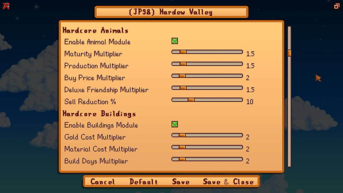JP’s Hardew Valley introduces a harder difficulty mode to Stardew Valley, where you can modify different aspects of the game to make them more challenging for you.