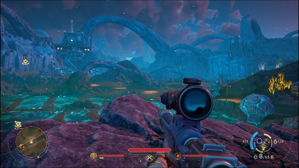 The variety of weapons feeds into the game’s exploration, which in this game features a similar design found in Obsidian’s last RPG, Avowed, and in the first, The Outer Worlds, as this isn’t an open world but a segmented world where you go from one planet to another, featuring unique biomes and cities. In terms of scale, it’s a significantly larger game compared to the first, with much of its content condensed into key areas. In the starting area alone, I spent my first 5 hours there, while the last place I visited before I finished my first playthrough is more dense and filled with secrets. You explore vibrant locations filled with deadly beasts and creatures, as well as war-torn locations, mountainous and icy landscapes, large space stations filled with vendors, and narrow corridors lit by commercial ads and neon lights.