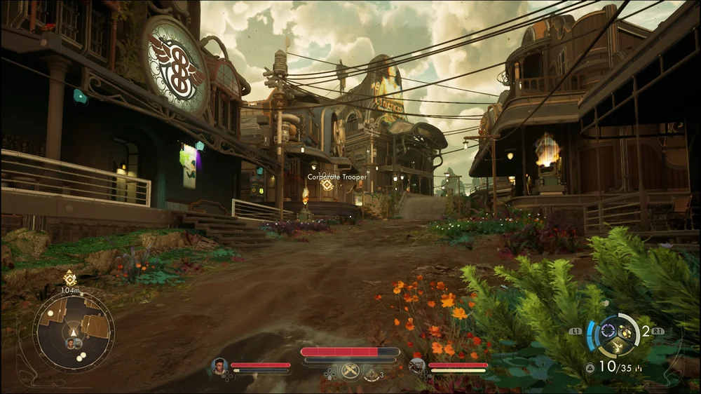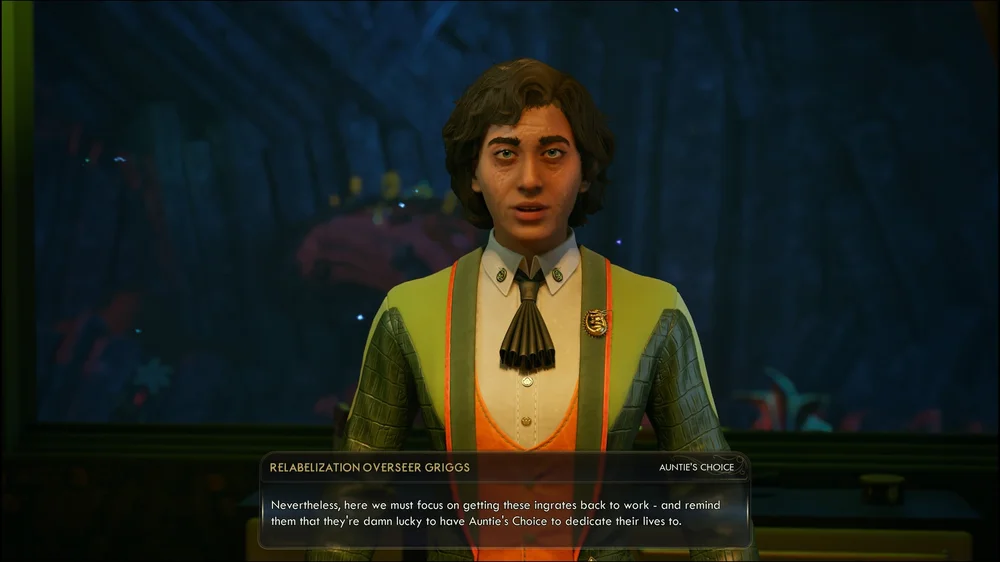The world of The Outer Worlds 2 is corporate-heavy and class-based, with a nostalgic aesthetic – despite humanity having the ability to visit other solar systems, they seem to be stuck in a familiar era in history, as the music, clothing, and certain objects and structures express the 1950s retro-futurism concept that reminds me greatly of the Fallout universe. It’s familiar in that way, but the lore, manner of speaking, and policies and culture are all unique and interesting to explore. It’s a realized world that doesn’t take itself too seriously.